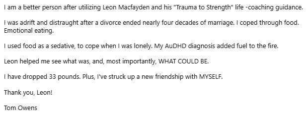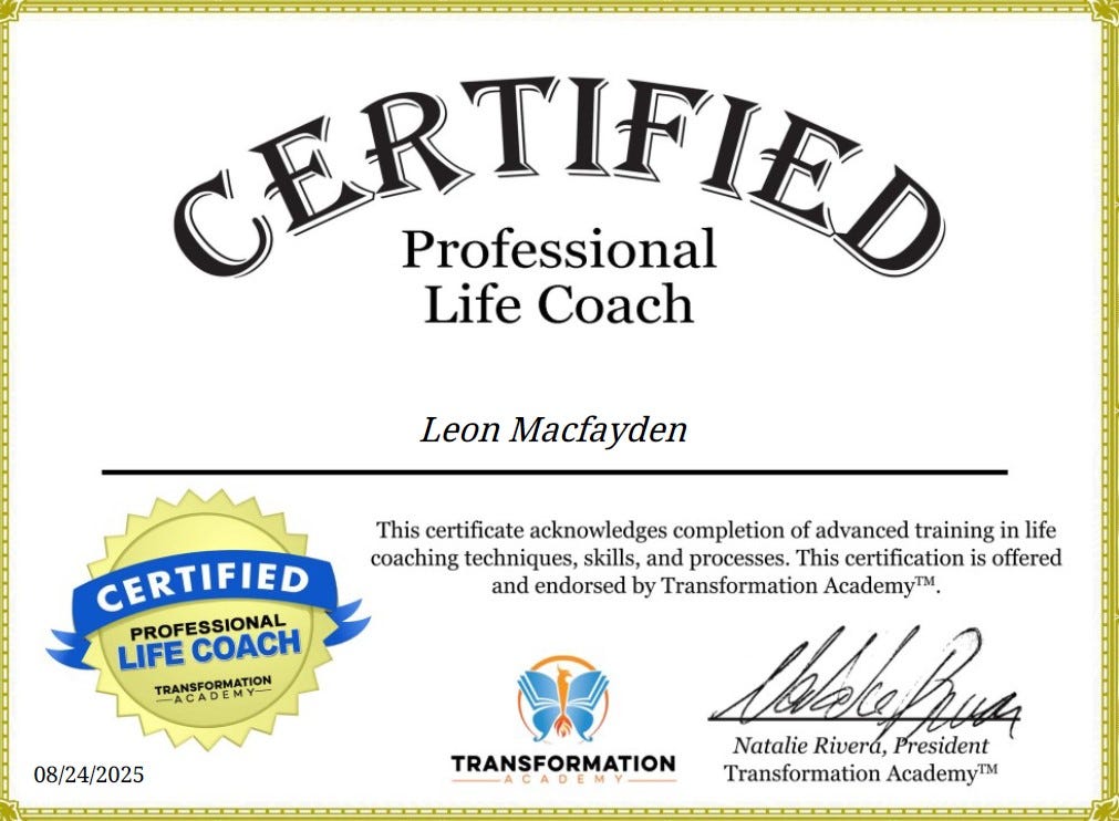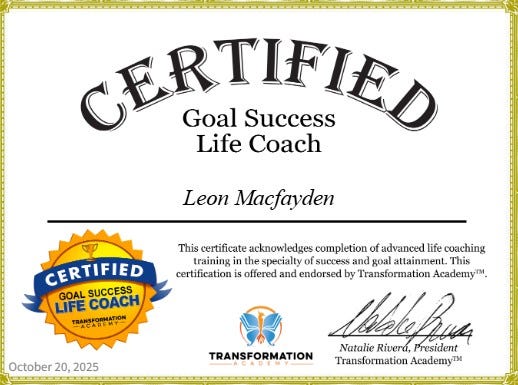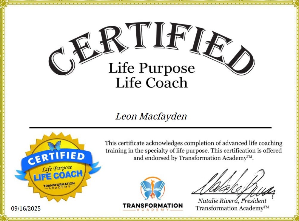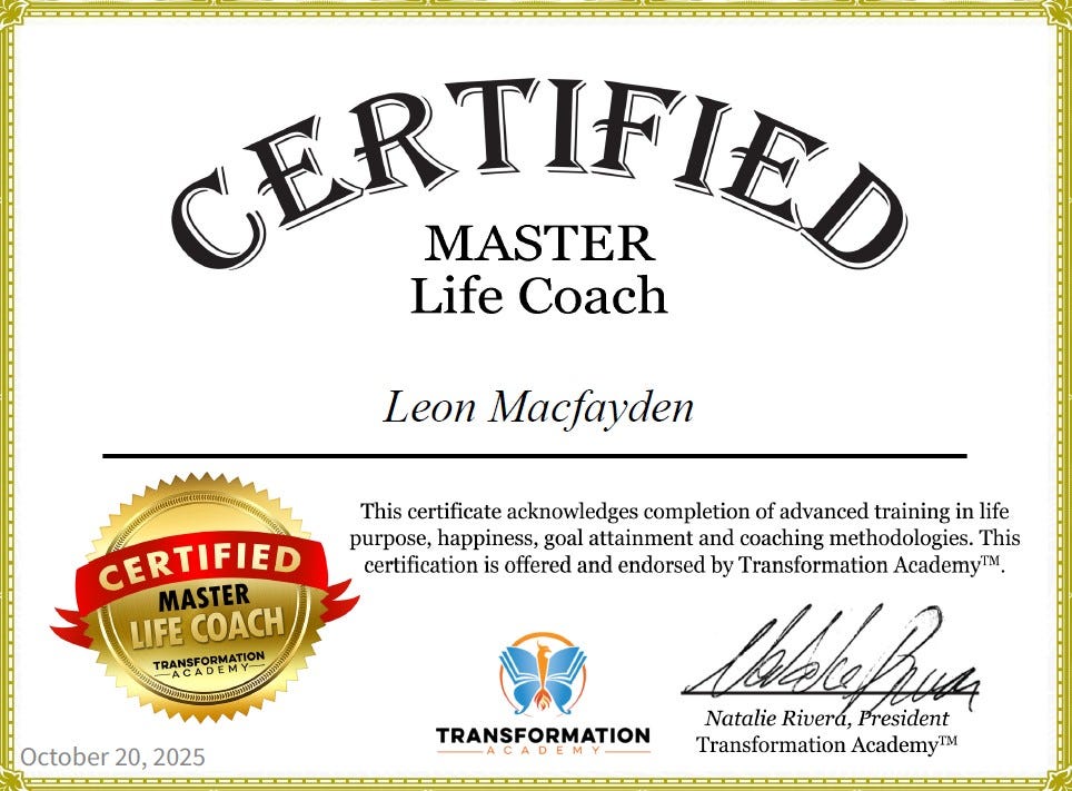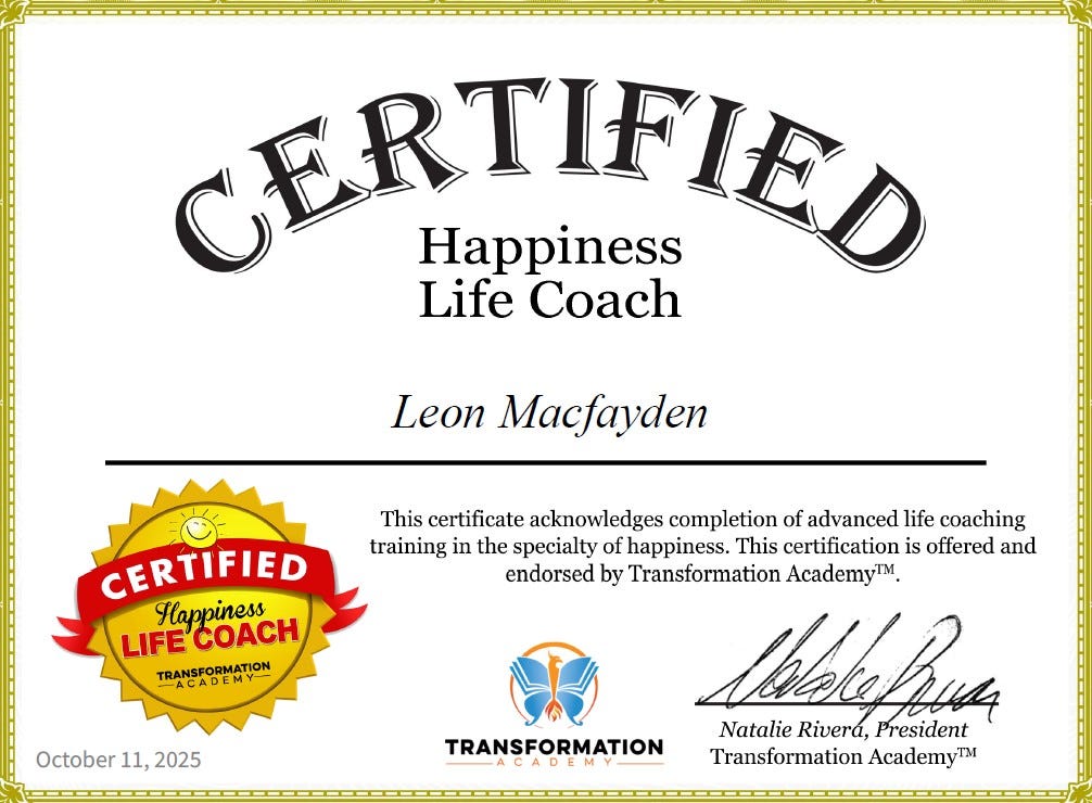 👋 I’m Leon Macfayden, a Master Certified Life Coach with specialisations in Life Purpose, Happiness and Goal Setting.